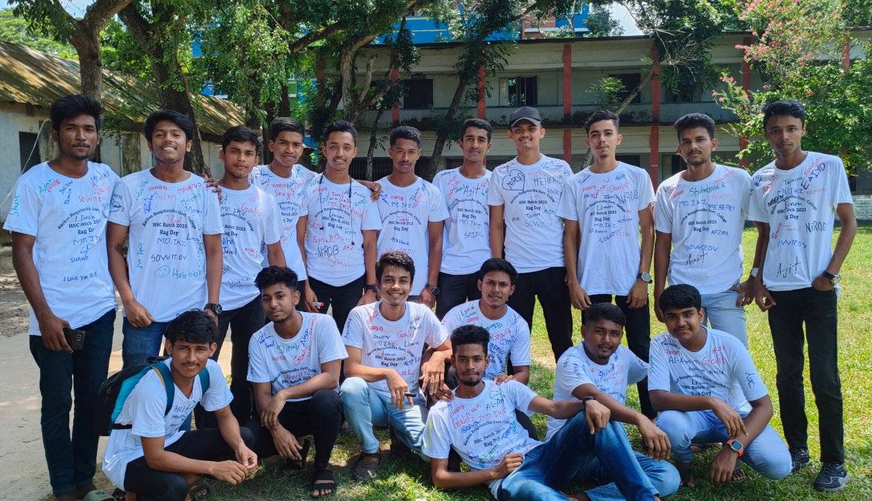 কলেজ ক্যাম্পাসে শিক্ষকদের গ্রুপ ছবি।