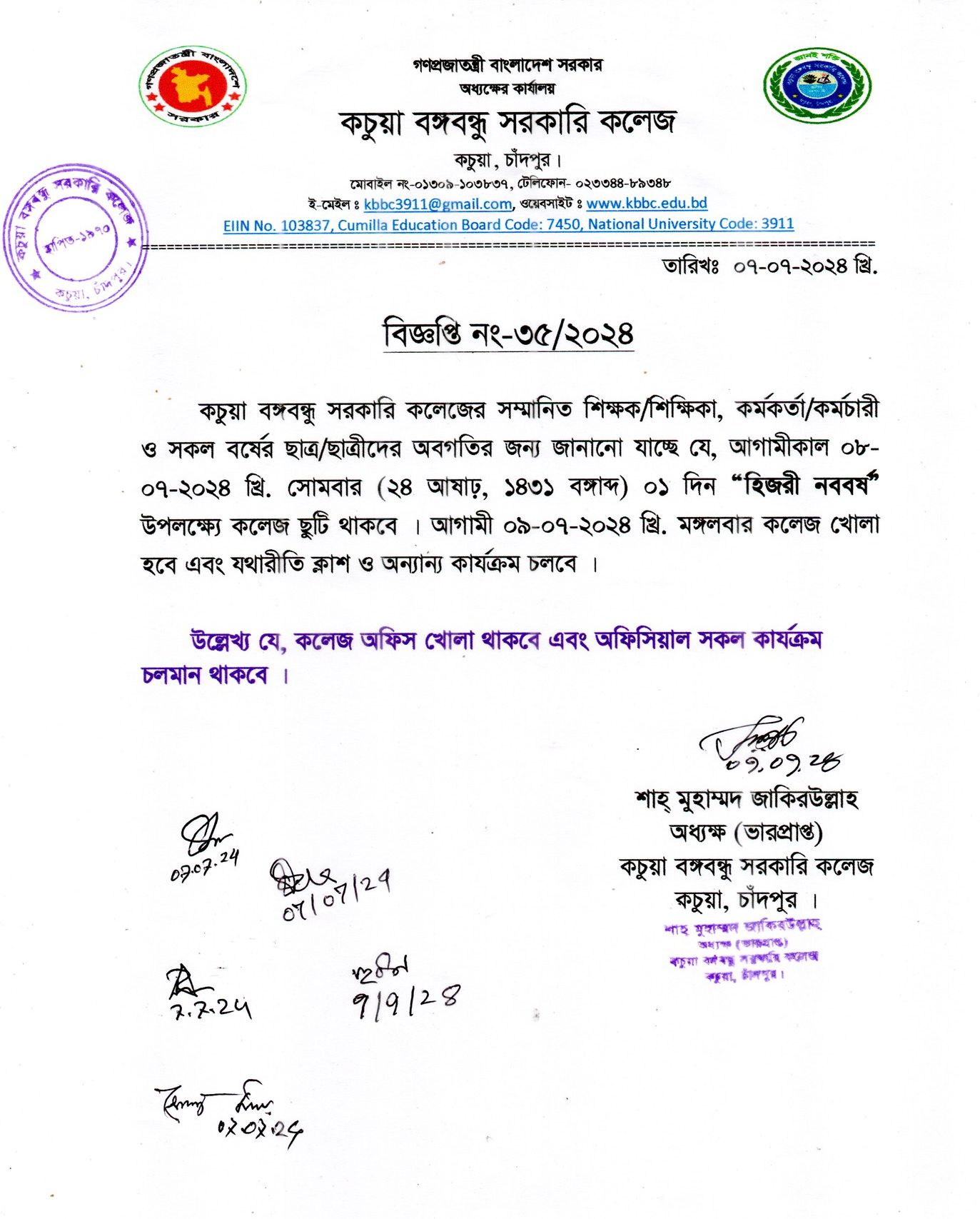 ‘জুলাই গণঅভ্যুথ্যান দিবস’ উপলক্ষ্যে কলেজ ছুটি |