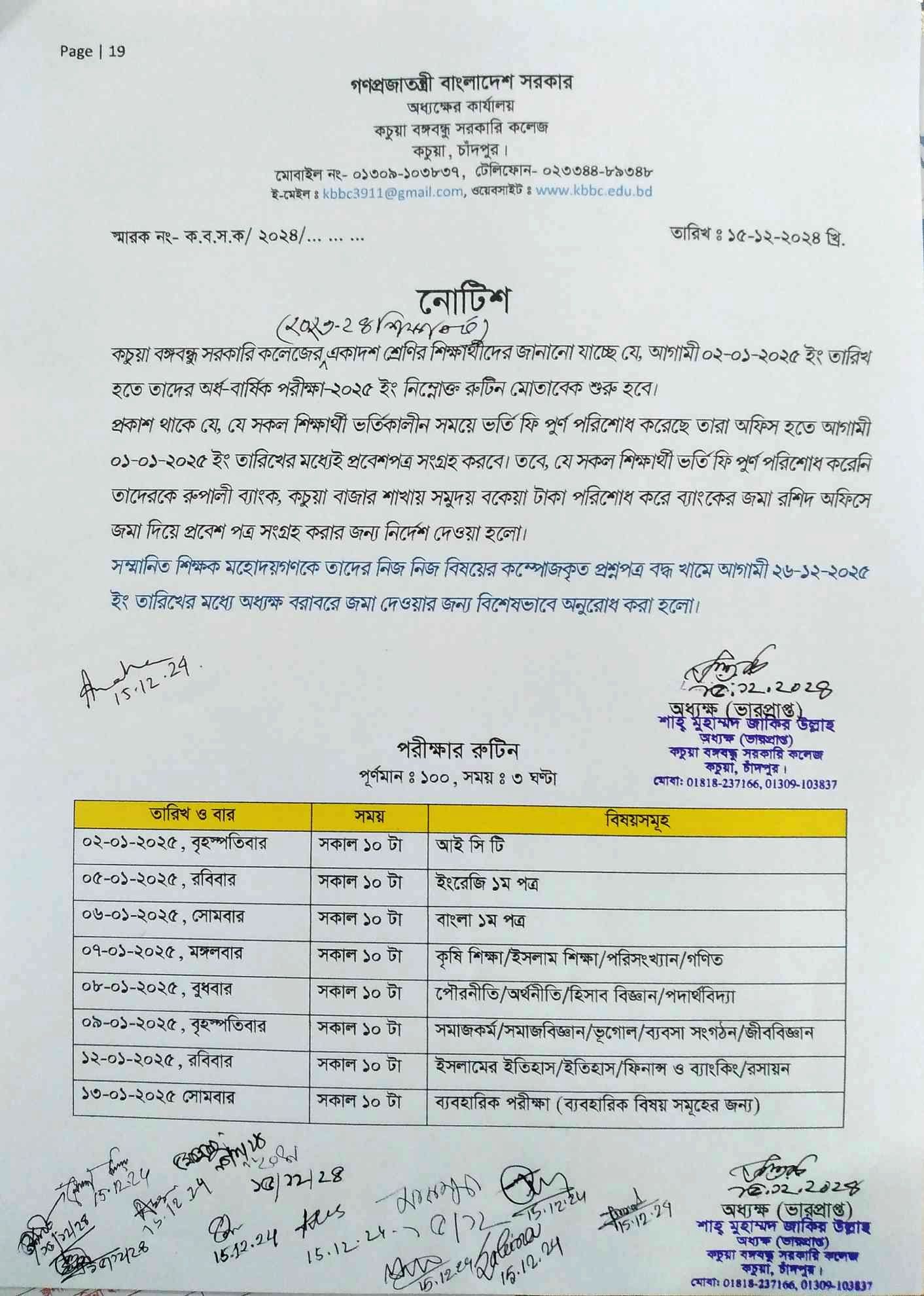 উচ্চ মাধ্যমিক ১ম বর্ষের অর্ধ-বাষিকী পরীক্ষার রুটিন-2025 |